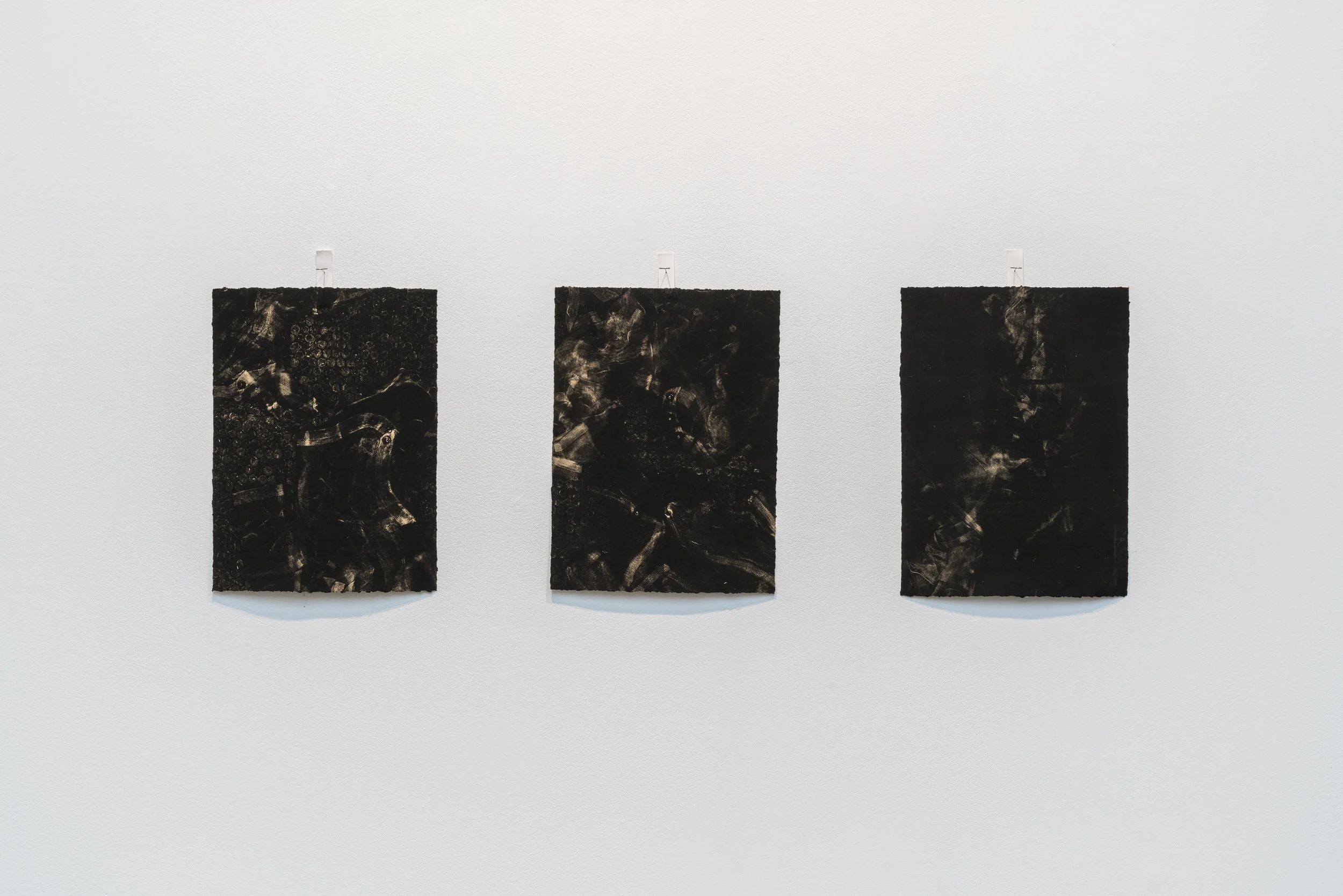 Monotype prints on archival recycled paper. Records are approximately 14.25h x 10.5w, and Fragments are 7h x 5.5w.